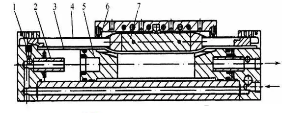 1-套筒,2-外磁環,3-外磁導板,4-內磁環,5-內磁導板,6-壓蓋,7-卡環,8-活塞,9-活塞軸,10-緩沖柱塞,11-氣缸筒,12-端蓋,13-進、排氣口