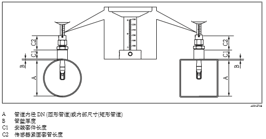 選擇傳感器長度:傳感器的最小長度取決于所需插入深度。所需插入深度的計算值必須在相應的插入式傳感器的可調 節范圍內。